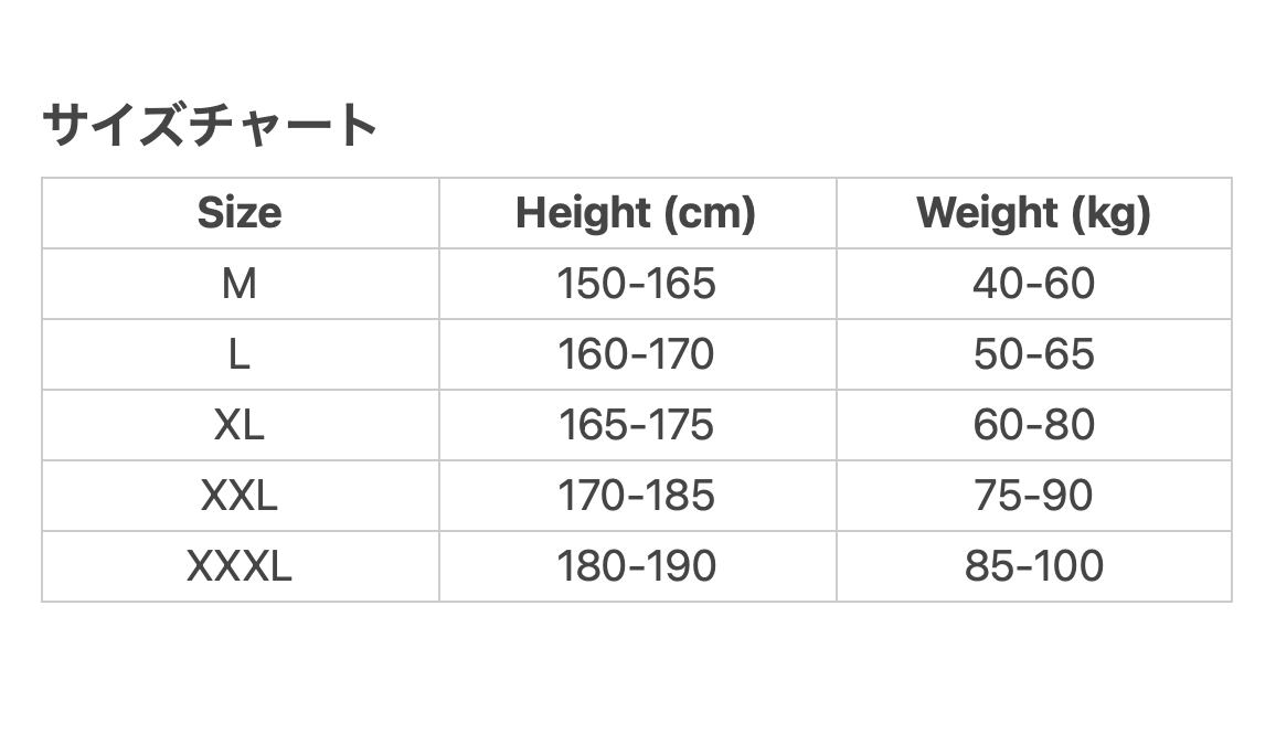 XXXL 身長180~190cm 体重85~100kg